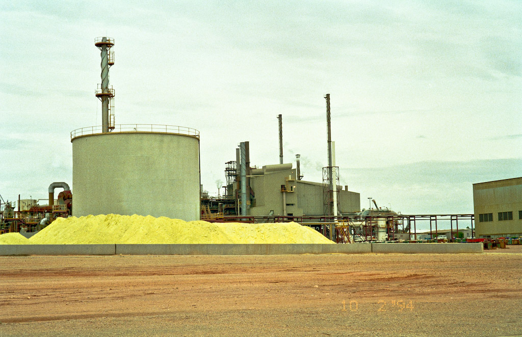 This is part of the copper refinery at the Olympic Dam mine site – the bright yellow substance is not “yellow cake” as many tourists are prone to believe … it is sulphur, used to make sulphuric acid, which is created on-site for use in the refining process. Most people think of Olympic Dam as just a uranium mine, but it also produces large quantities of Copper, Gold, and I think Silver too.